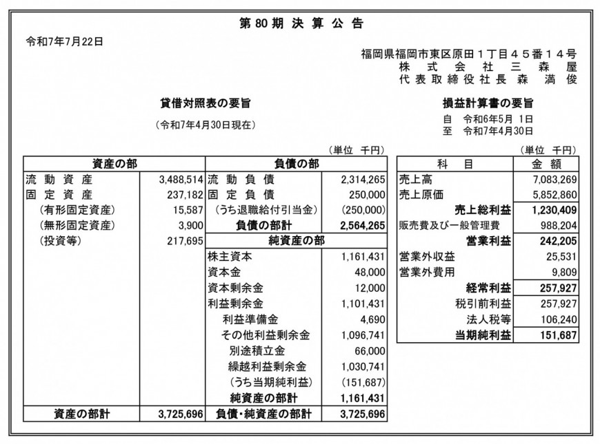 | 売上高 | 70億(令和6年5月1日~令和7年4月30日) |